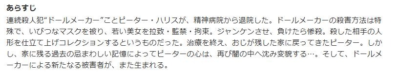 女性を殺した上に、その女性を模した人形を作ってコレクションするらしいです