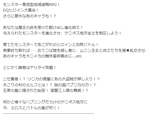昔から思ってたんですけど、ドラゴンク●ストを題材にした同人ゲームって多すぎません?www