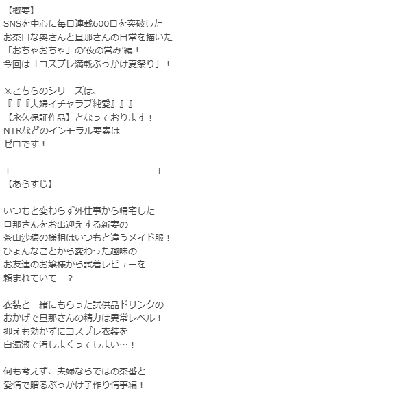 第2位:夫婦ノ夜 汁だく編 〜お茶目な奥さんとコスプレぶっかけ祭〜