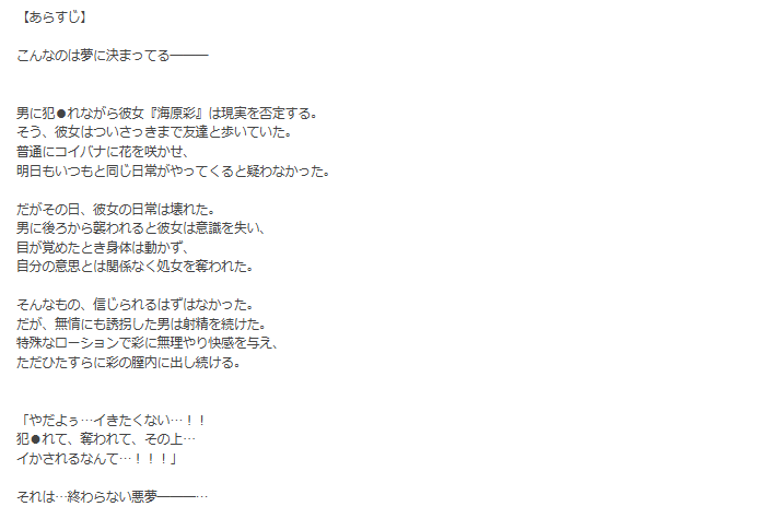 本当に現実かどうかもあやふやで恐怖したまま犯されるその姿、とても鬼畜で素晴らしいですね!!
