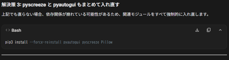 pip3 install –force-reinstall pyautogui pyscreeze Pillow